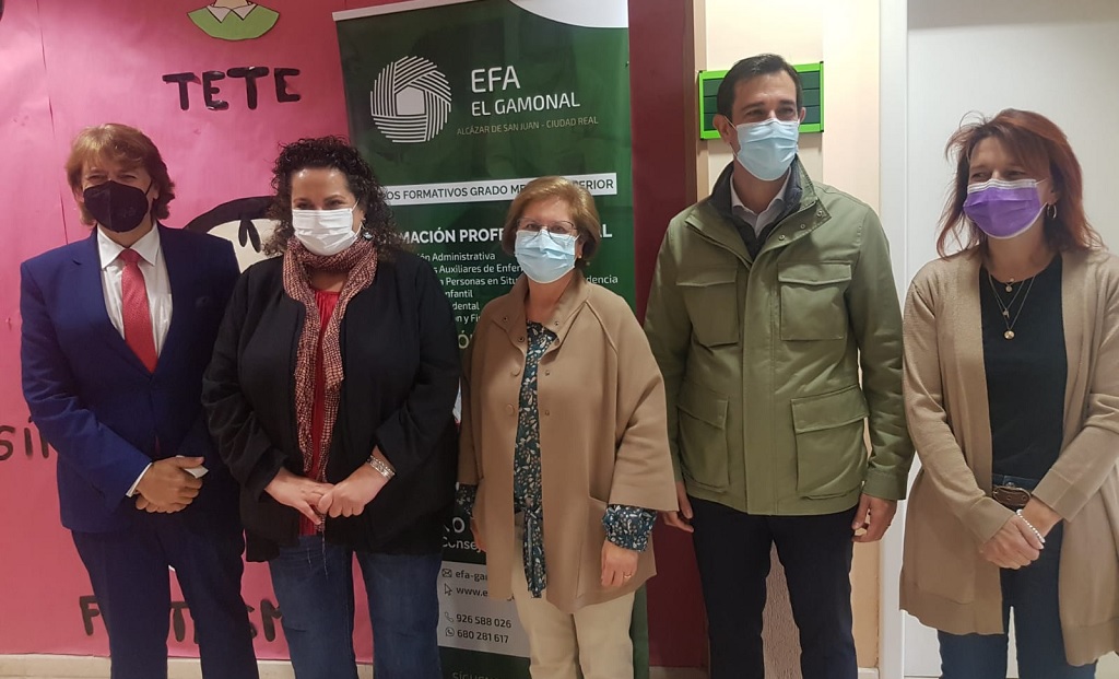 El Gobierno regional, representado por Marta Roldán -directora general de Formación para el Empleo- y Agustín Espinosa -delegado provincial de Economía, Empresas y Empleo- han visitado en la mañana de este 18 de noviembre la EFA El Gamonal de Alcázar de San Juan. Lo han hecho junto a la concejala Patricia Benito, el director regional de los centros EFA, Pedro Barahona y la directora del centro alcazareño, María Teresa Salinero.