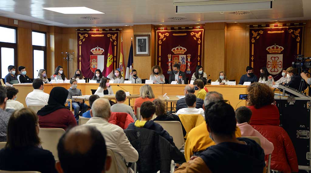 Los 19 ediles infantiles que integran la Corporación Infantil extraída del foro de niños y niñas ‘Tu voz cuenta’ volvió a reunirse de forma presencial en el salón de plenos del Ayuntamiento de Daimiel. El alcalde, Leopoldo Sierra, que presidió la sesión, se mantuvo atento a cada una de las preguntas y propuestas que le presentaban estos característicos concejales.