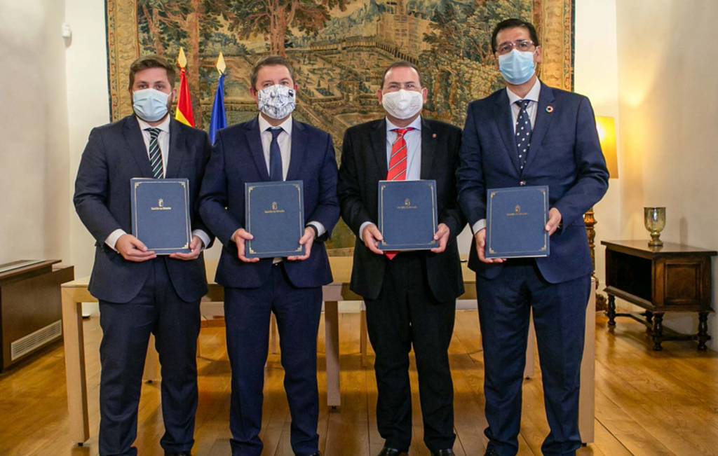El presidente de la Diputación provincial, José Manuel Caballero, y el presidente de la Junta de Comunidades, Emiliano García Page, y el alcalde Puertollano, Adolfo Muñiz, han firmado esta mañana en Toledo un convenio de colaboración para la remodelación de la parte del Paseo de San Gregorio conocida como Zona del Bosque, ubicada en las proximidades de la Virgen de Gracia.