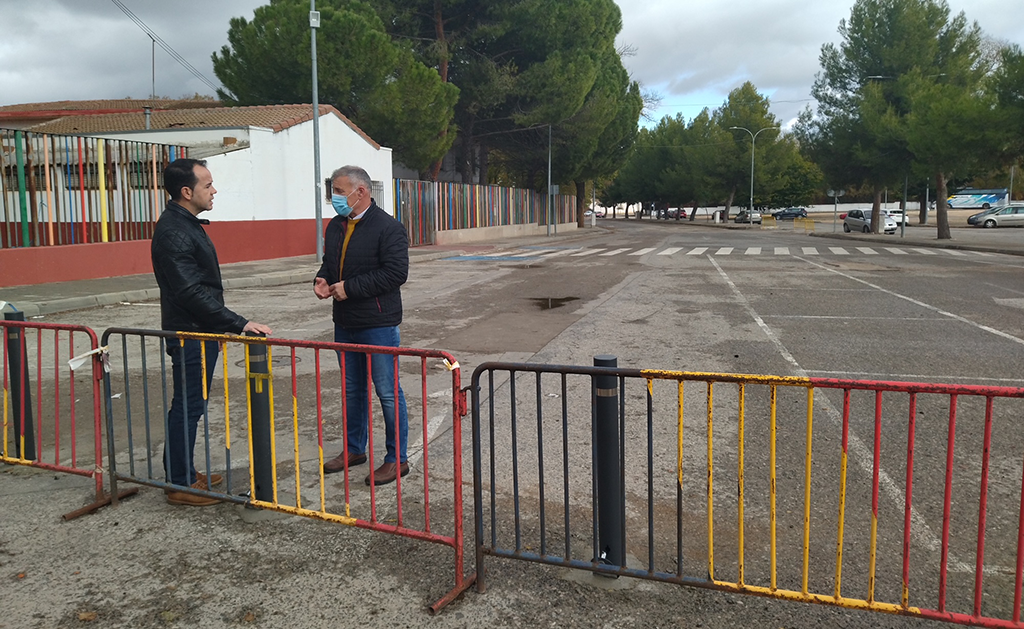 Esta mañana el alcalde Sergio García-Navas y el concejal de Deportes Francisco Gallego de la Sacristana han visitado las obras que se están llevando a cabo para la peatonalización definitiva de los viales aledaños al colegio Carrasco Alcalde y a las zonas deportivas.