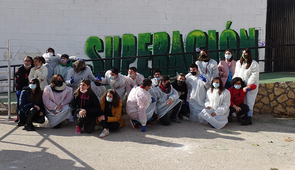 Este miércoles, han llevado a cabo una actividad muy creativa y que dejará plasmado el objetivo de esta semana. Se trata de la creación de un graffiti en una de las paredes de la explanada del recinto ferial. Para desarrollar esta actividad han contado con la ayuda del profesor de la Escuela de Pintura y Arte Urbano, Franz Campoy. Así, este muro contará con la imagen del muñeco Inclusón y la palabra “Superación”. “A pesar de que Asprodiq está a las afueras de Quintanar nosotros queremos estar dentro del pueblo y queremos dejar huella y así lo hemos hecho con este mural”.