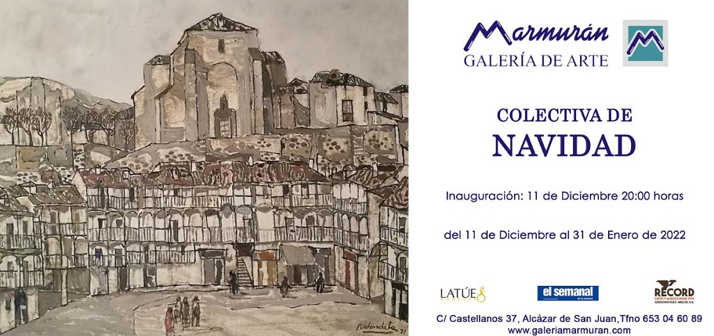 La Galería de Arte Marmurán, C/ Castellanos, 37 de Alcázar de San Juan, inaugura el próximo sábado 11 de diciembre a las 20:00 horas, una exposición titulada «Colectiva de Navidad 2021». La muestra se podrá visitar del 11 de diciembre al 31 de enero de 2022. El horario de visitas es de lunes a viernes de 18:00 a 21:00 horas, sábados de 12:00 a 14:00 horas.