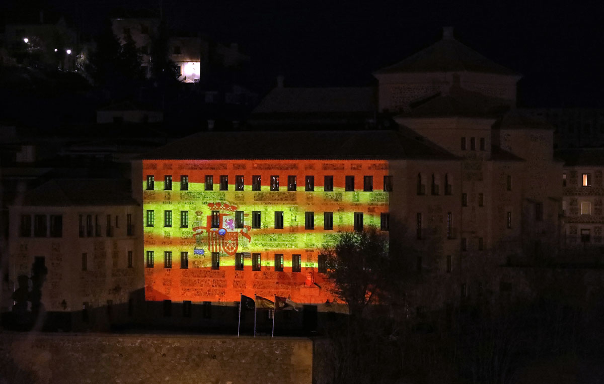 La fachada principal de la sede de las Cortes de Castilla-La Mancha se va a iluminar con los colores de la bandera española durante la tarde-noche de los días 6, 7 y 8 de diciembre, dentro de las iniciativas que el Parlamento Autonómico está realizando con motivo del Día de la Constitución.