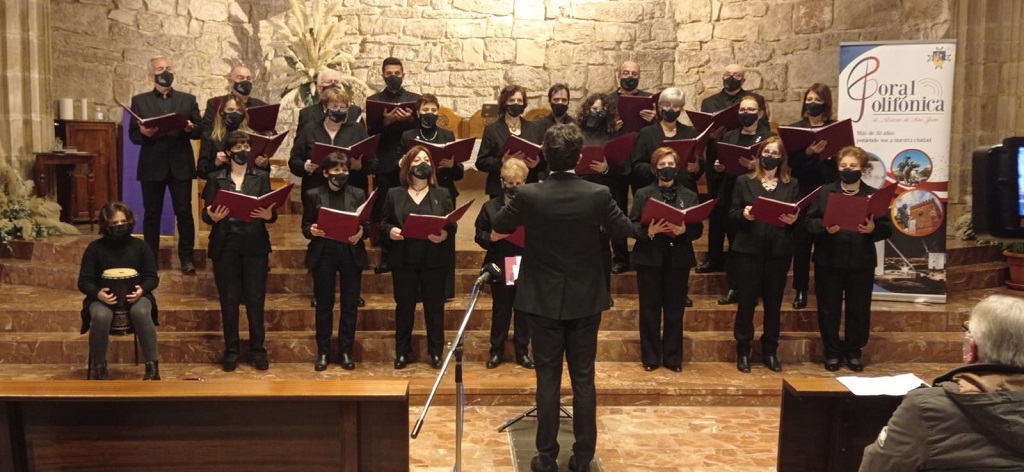 La Coral Polifónica de Alcázar de San Juan, comenzó con “Verbum Caro”, del cancionero de Uppsala, y continuó con “Dime Niño”, “Corred Pastores” o el villancico tradicional colombiano, Navidad Negra. La coral alcazareña fue fundada en 1987 y actualmente está dirigida por Luis Miguel Abengózar , profesor de música. Está formada por 30 voces aficionadas.