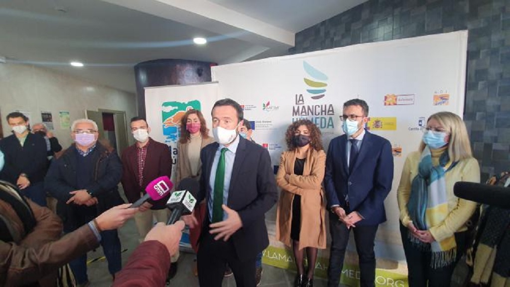 El consejero ha detallado durante la presentación del proyecto que el Gobierno autonómico va a destinar hasta tres millones de euros para la mejora y la restauración de reservas de la biosfera, de los cuales 1,3 millones de euros irán dirigidas a mejoras en la Reserva de la Biosfera de la Mancha Húmeda. Y también, este gran territorio se verá ampliamente beneficiado con parte de los siete millones de euros recibidos para la restauración de humedales en la región.