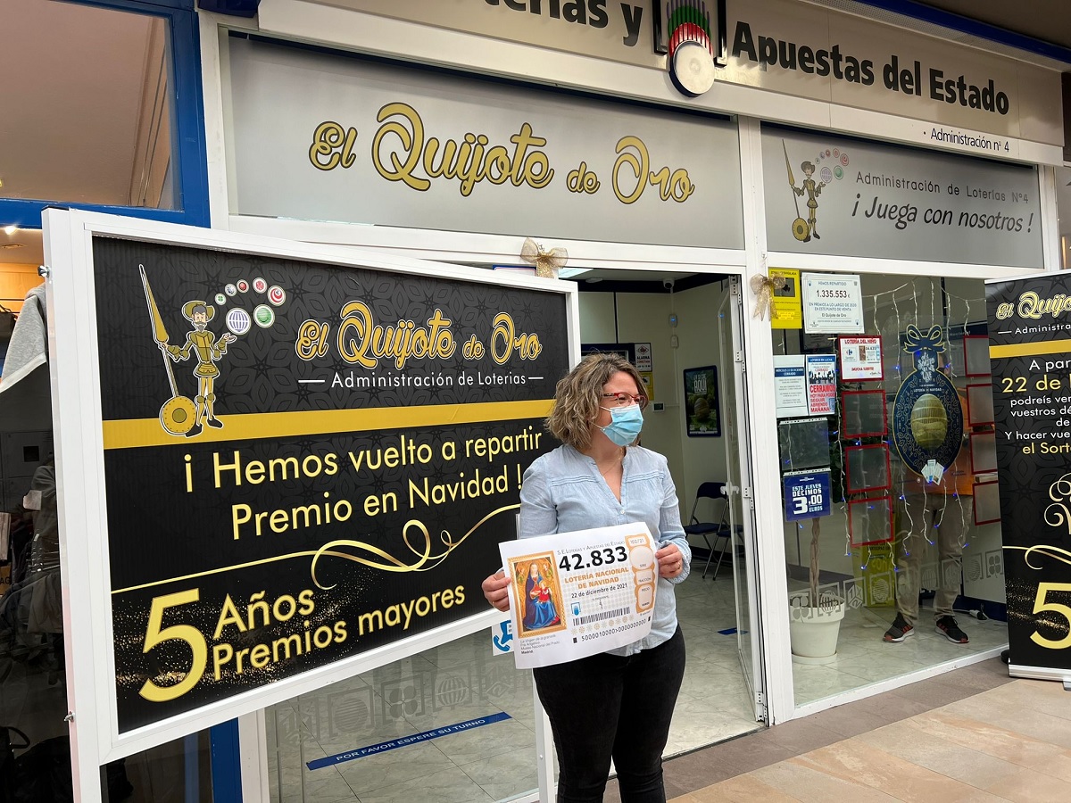 Una de las series del cuarto premio de la Lotería de Navidad ha sido vendida en la Administración del centro comercial Carrefour de Alcázar de San Juan. En concreto, el agraciado ha sido el número 42.833, coincidente con el primero de los dos cuartos premios del Sorteo Extraordinario, dotado con 200.000 euros a la serie -20.000 euros al décimo-.