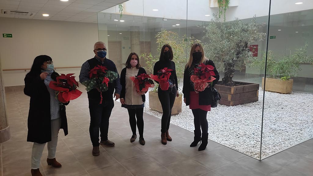 El Alcalde de la localidad, Carlos Ortiz, acompañado de parte de la Corporación, ha visitado las instalaciones de la Residencia Cuna del Mayo con una flor de pascua como presente navideño para los residentes.