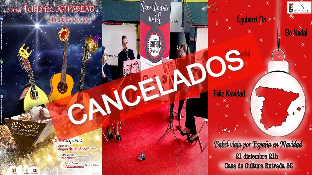 El pueblo de Bolaños empezará 2022 sin el concierto de Año Nuevo, el “Festival Folclórico de Navidad” y la gala navideña de Babel, que iban a tener lugar los días 1, 2 y 4 de enero, respectivamente. Pese a los esfuerzos realizados estos días para poder realizar estos eventos, los organizadores se han visto obligados a cancelarlos por bajas por Covid-19 en el elenco de las funciones.