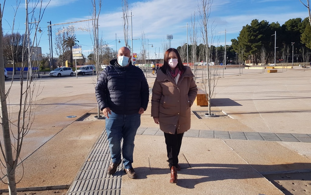 Ocho meses después del inicio de las obras de remodelación de los 15.000 metros del entorno de la plaza de toros de Alcázar de San Juan, este miércoles, 5 de enero, se han inaugurado por parte de la alcaldesa, Rosa Melchor, y del concejal de Obras, Javier Ortega.
