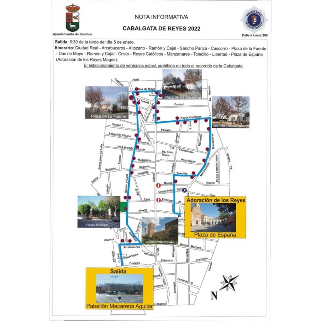 La cabalgata se adelanta dos horas y comenzará a las 16.30 horas de la tarde. El lugar de partida seguirá siendo el previsto inicialmente, pabellón Macarena Aguilar, y con el mismo itinerario establecido, el cual pasará por las calles Ciudad Real, Arcabuceros, Altozano, Ramón y Cajal, Sancho Panza, Cascorro, Plaza de la Fuente, Dos de Mayo, Cristo, Reyes Católicos, Manzanares, Toledillo, Libertad y finalizará en la Plaza de España.