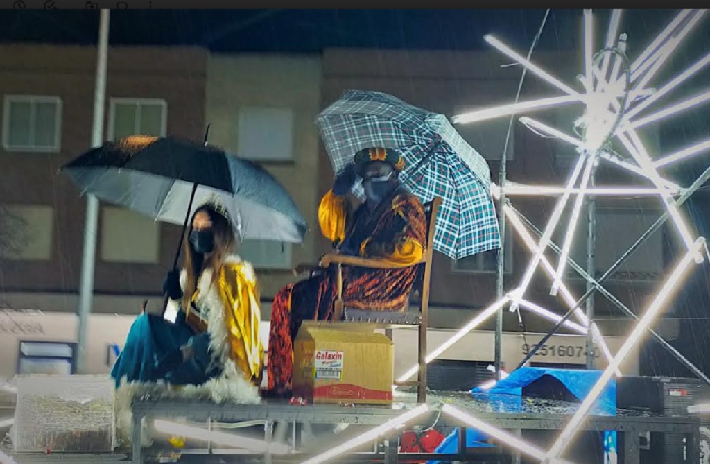 A pesar de que la lluvia deslució la Cabalgata, la comitiva pudo realizar el recorrido y niños y mayores no faltaron en las aceras para saludar a Melchor, Gapar y Bastasar, que estuvieron acompañados por cada una de las Reinas de las Fiestas en sus carrozas. Otras tres pequeñas carrozas con los pajes acompañaron a sus Majestades durante todo el recorrido.
