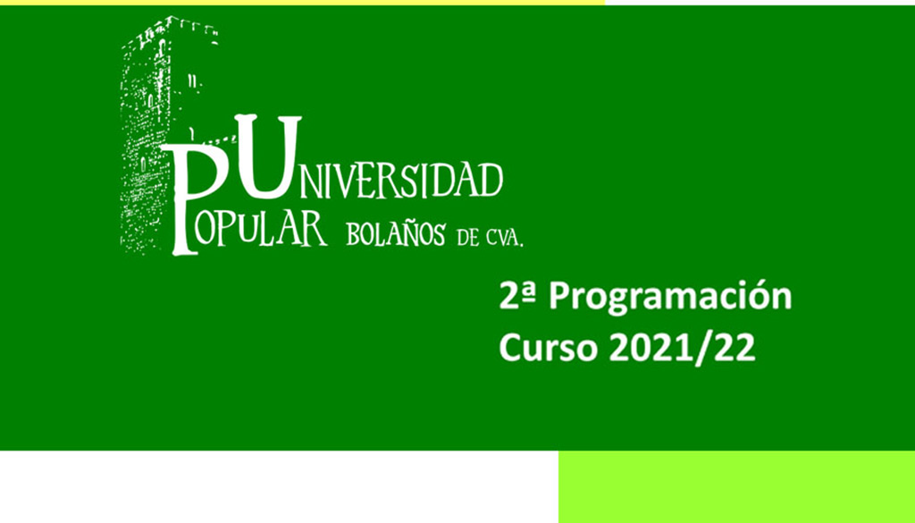 Tras las vacaciones de Navidad, la Universidad Popular de Bolaños, impulsada por la Concejalía de Educación y Cultura, retoma el curso 2021/2022 con la apertura del plazo de inscripción para participar en las Jornadas de Senderismo, que comenzará el martes 11 de enero, mientras que el de los cursos y talleres lo hará el jueves 13 de enero. Ambas matrículas se prolongarán hasta el 28 de enero y las clases tendrán lugar desde el 7 de febrero hasta el 31 de mayo de 2022.