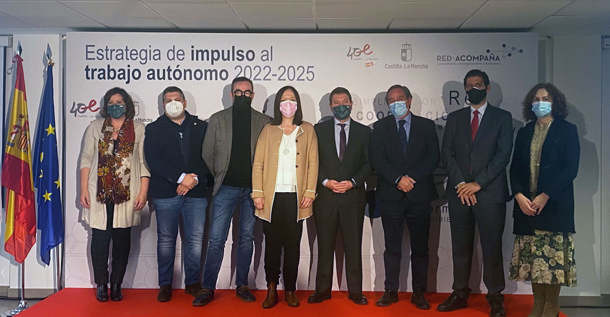 Los máximos responsables del Gobierno de Castilla-La Mancha y de los agentes sociales, UGT, CCOO y CECAM, se han dado cita este lunes, 10 de enero, en Alcázar de San Juan para presentar la Estrategia de Impulso al Trabajo Autónomo 2022-2025.