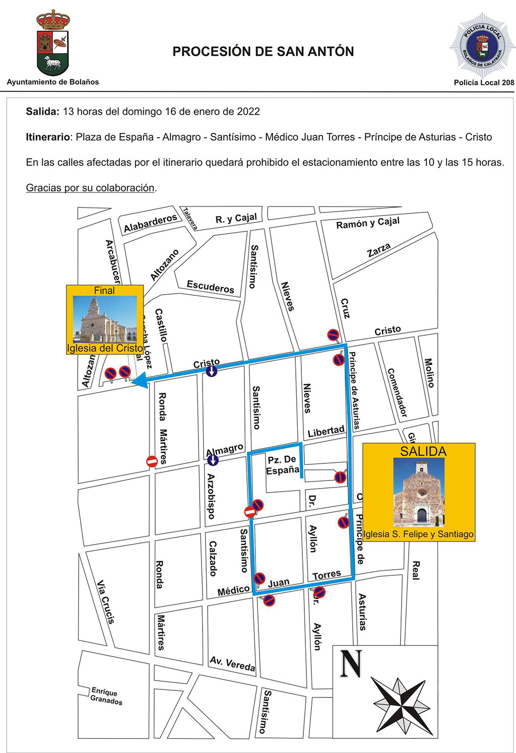Junto a ello, la Policía Local de Bolaños ofrece recomendaciones que los ciudadanos deberán atender y realizará labores específicas de vigilancia encaminadas a garantizar un desarrollo seguro de los festejos.