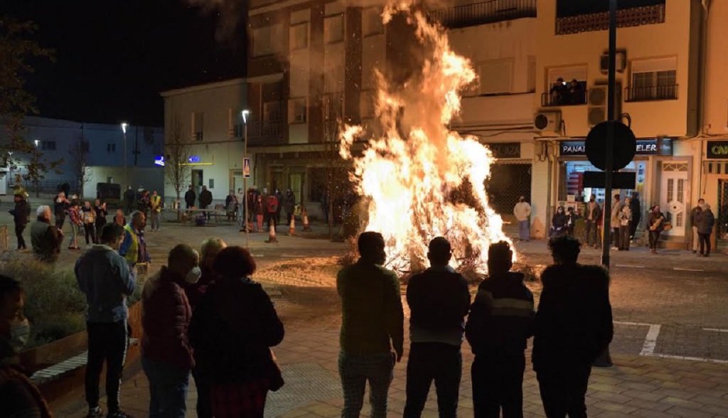 A las 20:00 h. el alcalde, Pedro Ángel Jiménez, y la concejala de Festejos, Alba Hilario, iniciaban una cuenta atrás para el encendido de la hoguera municipal, situada frente a la ermita de San Antón.