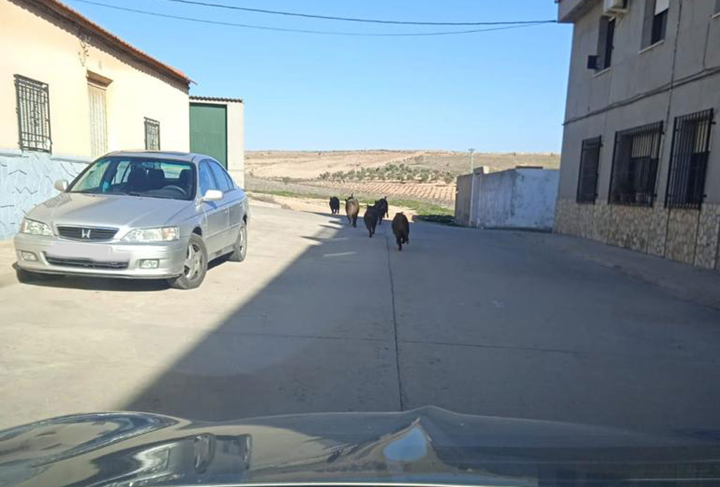 Sorpresa y expectación de los vecinos de Campo de Criptana este domingo, 16 de enero, al contemplar la imagen de cerca de una decena de jabalíes por las calles de la villa molinera.