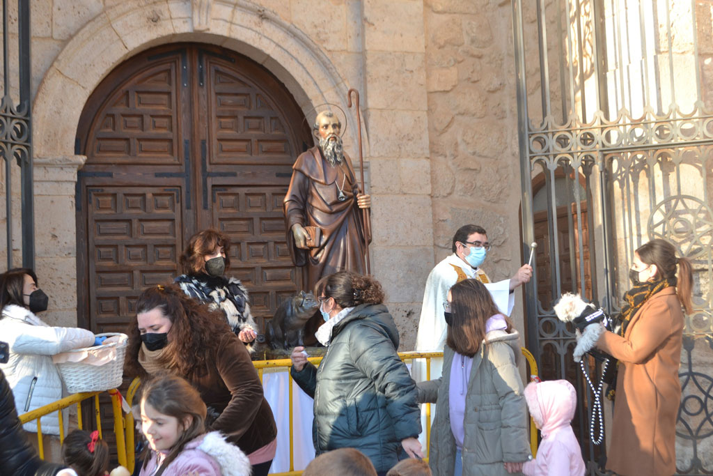 Ya en el atrio de la Iglesia de San Andrés y con la imagen de San Antón presidiendo en todo momento el acto, tuvo lugar la bendición de animales a cargo del párroco de Miguel Esteban, Juan Antonio López.