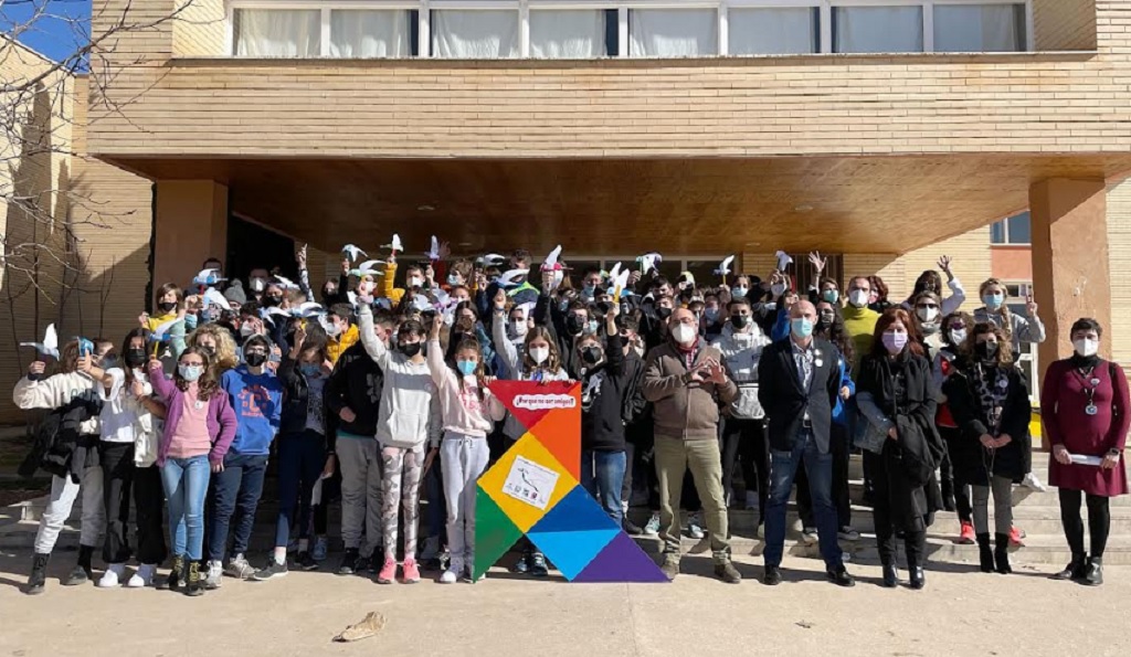 Así mismo, todos los alumnos y alumnas han sido obsequiados con una chapa que lleva impresa la “banda sonora” elegida para este día y la “pajarita de la diversidad y del respeto”, elegida como símbolo del Día Escolar de la No Violencia y la Paz 2022. Además, durante estos días, en el balcón del Ayuntamiento, están colgadas las pajaritas de gran tamaño realizadas por los cinco centros educativos de la localidad.