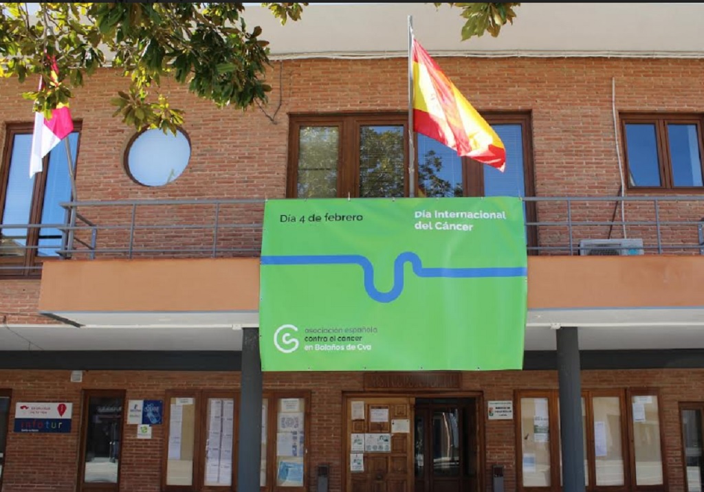 Hoy 4 de febrero se celebra el Día Mundial Contra el Cáncer, como se puede leer en la gran pancarta que cuelga de la fachada del Ayuntamiento de Bolaños para dar visibilidad a esta enfermedad. Igualmente y con el mismo propósito, el alcalde de la localidad, Miguel Ángel Valverde y la presidenta local de la AECC, Elisa Almansa, leerán un manifiesto esta tarde en el Salón de Actos del Consistorio, a las 18:00 horas.