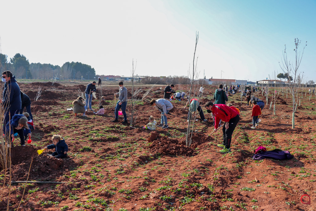 Un total de 200 familias con niños nacidos en los años 2020 y 2021 han participado en la tercera plantación que se desarrolla en esta zona verde de nueva creación, que trata de dar continuidad entre el casco urbano y el Complejo Lagunar de la localidad, a través de un corredor verde que discurre desde la Plaza de Toros, pasando por el parque Alces, Bosque de la Vida para terminar en el Complejo Lagunar.