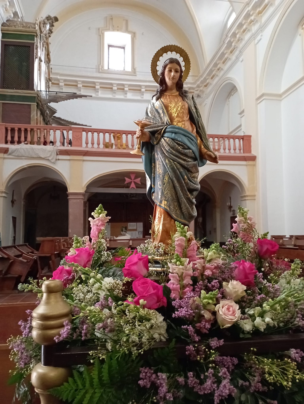 La santa fue trasladada en andas por devotas hasta la parroquia de la Inmaculada Concepción, donde se le realizó la función principal presidida por los párrocos. Acto seguido, la imagen presidió el traslado de vuelta a la ermita de San José acompañada de nuevo de los fieles.