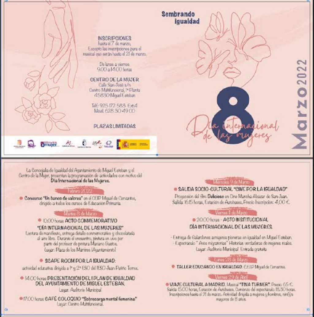 Lectura de manifiesto, talleres educativos, café coloquio, viajes culturales, la entrega de los Galardones por la Igualdad y la presentación del I Plan de Igualdad del Ayuntamiento de Miguel Esteban, son algunas de las propuestas que se llevarán a cabo en el mes de marzo en la localidad y que se prorrogarán hasta el mes de abril con la asistencia a un musical en Madrid.