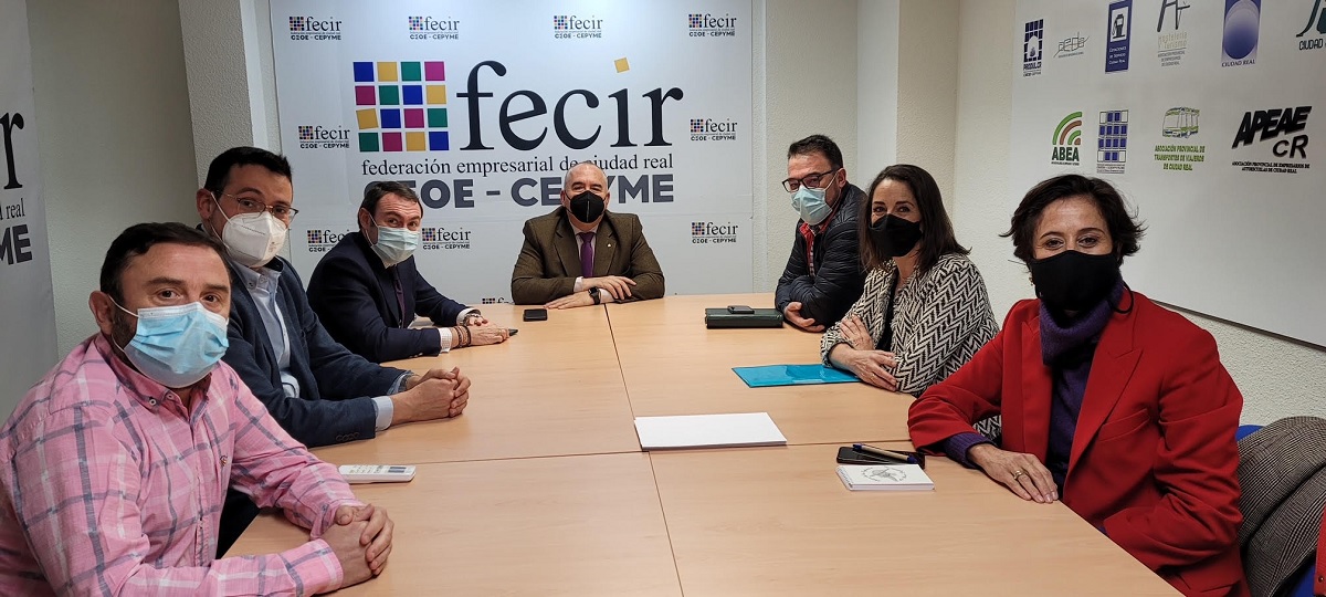 La sede de la Federación Empresarial de Ciudad Real (FECIR CEOE-CEPYME) ha acogido una reunión de su presidente, Carlos Marín, acompañado del vicepresidente, José Luis Ruiz, y del secretario general, David Plaza, con varios representantes de la Plataforma de Afectados por la Ciudad Administrativa en Ciudad Real.