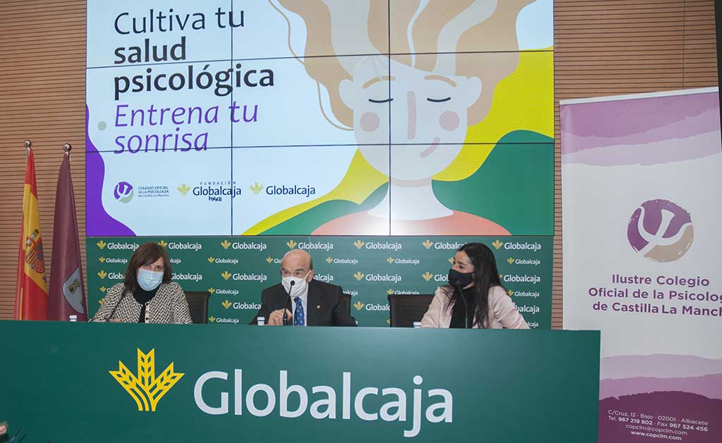 La decana del Colegio de la Psicología de Castilla-La Mancha, Mª Dolores Gómez Castillo, el presidente y la directora general de la Fundación Globalcaja HXXII, Rafael Torres Ugena y Carla Avilés Rogel, han presentado esta mañana el programa Cultiva tu salud psicológica. Entrena tu sonrisa, una iniciativa que tiene como objetivo servir de apoyo a aquellas personas que están pasando por situaciones complicadas.