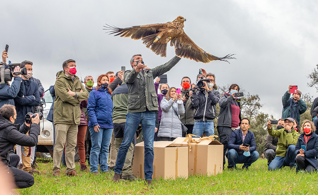 Álvaro Gutiérrez daba detalles de estos trabajos junto al consejero de Desarrollo Sostenible, José Luis Escudero, con quien compartía esta mañana en El Borril la liberación de dos águilas imperiales recuperadas en el CERI de Sevilleja de la Jara y de tres linces ibéricos para su reintegración en los Montes de Toledo.