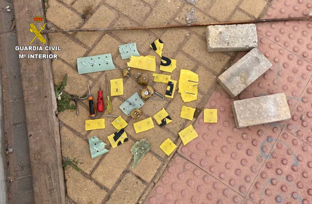 También esta semana, una patrulla del Puesto de la Guardia Civil de Calera y Chozas intervino una docena de artefactos de construcción manual con puntas metálicas que estaban colocados en los accesos a una fábrica de esa localidad que podrían ser usados para dañar los neumáticos de los vehículos que utilizasen esa vía.
