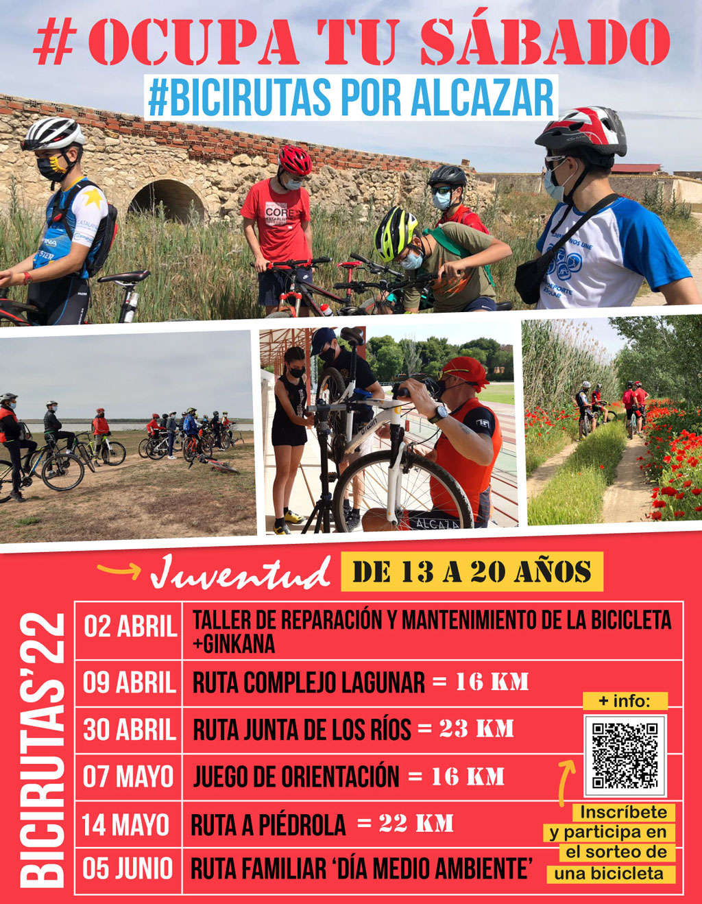 La concejalía de Infancia y Juventud del Ayuntamiento de Alcázar de San Juan organiza un año más las Bicirutas, una actividad enmarcada en el programa “Ocupa tu sábado” con el objetivo de ofertar ocio alternativo a jóvenes y adolescentes de 13 a 20 años de edad.