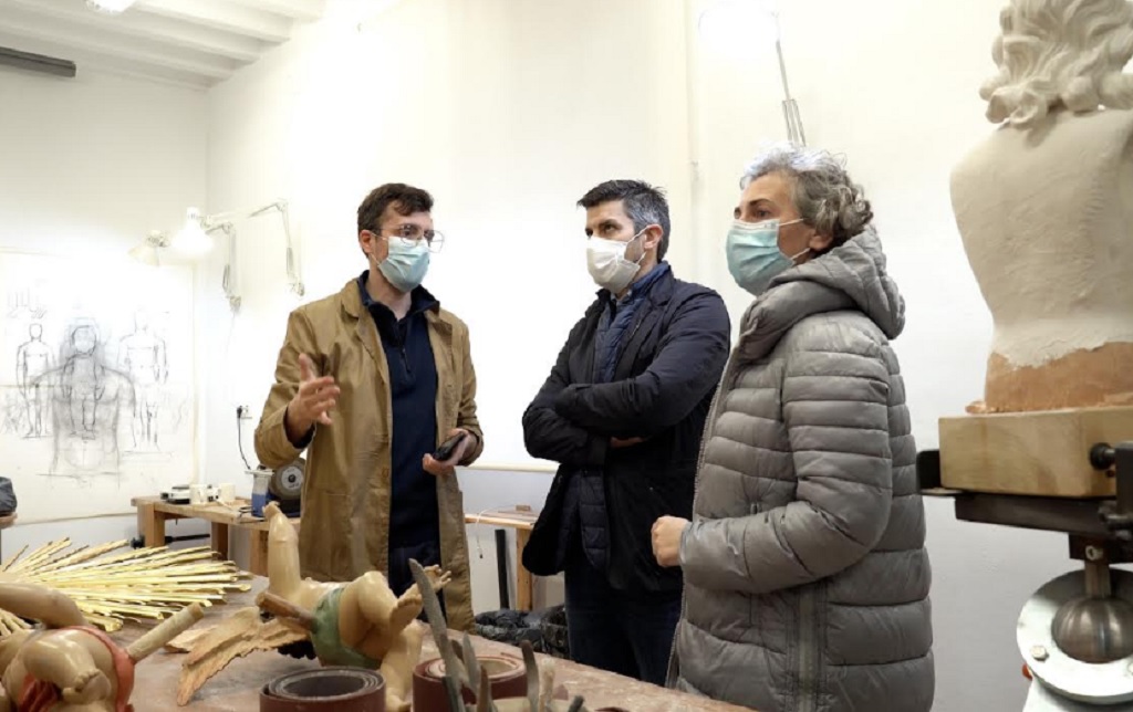 El alcalde de Campo de Criptana, Santiago Lázaro, acompañado por otros concejales de su equipo de Gobierno, visitó el taller del imaginero local Francisco Javier Muñoz Boluda. Un joven criptanense que, hace seis años, dejó la arquitectura para dedicarse a su auténtica pasión y que hoy es uno de los imagineros más solicitados de la comarca.
