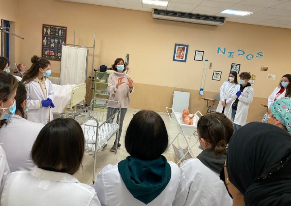 Fuentes les habló de la atención inmediata y cuidados iniciales del recién nacido y la madre. Junto a la explicación se pusieron en práctica todos los procedimientos tratados, desde que el bebé llega de paritorio junto a la madre a la planta de Tocoginecología hasta que son dados de alta hospitalaria.