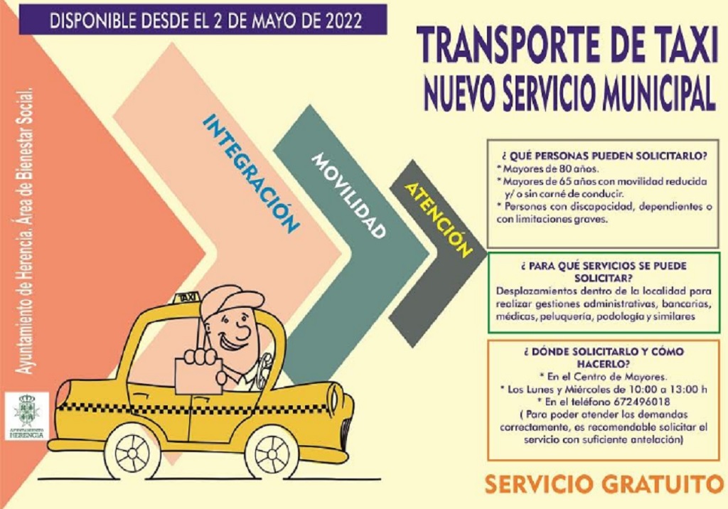 Tras su aprobación en pleno, la concejalía de Bienestar Social y el Centro de Mayores, ponen en marcha el Servicio Municipal de Transporte de Taxi para atender a personas en situación de vulnerabilidad que no cuenten con medios propios para desplazarse.