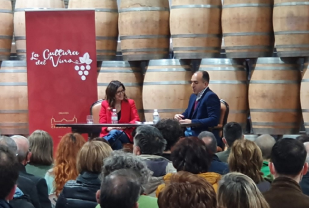 La escritora y periodista Ana Iris Simón, natural de Campo de Criptana, participa en el programa ‘La Cultura del Vino’ de la Diputación de Ciudad Real presentando su libro Feria. Un centenar de personas acudieron a la cita el pasado viernes en la Bodega El Vínculo de Campo de Criptana para charlar con ella en la iniciativa ‘Diálogos con vino’ dentro de este programa cultural desarrollado por la institución provincial como antesala a FENAVIN.