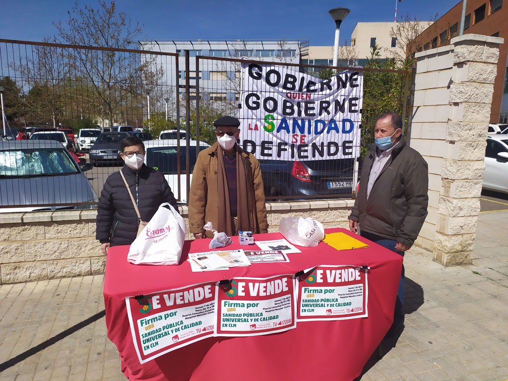 Una iniciativa con la que Izquierda Unida de Alcázar de San Juan se suma a la recogida de firmas regional por la Sanidad Pública, tras denunciar la reducción del gasto sanitario en los Presupuestos de Castilla-La Mancha de 2022 y la ampliación de conciertos con clínicas privadas.