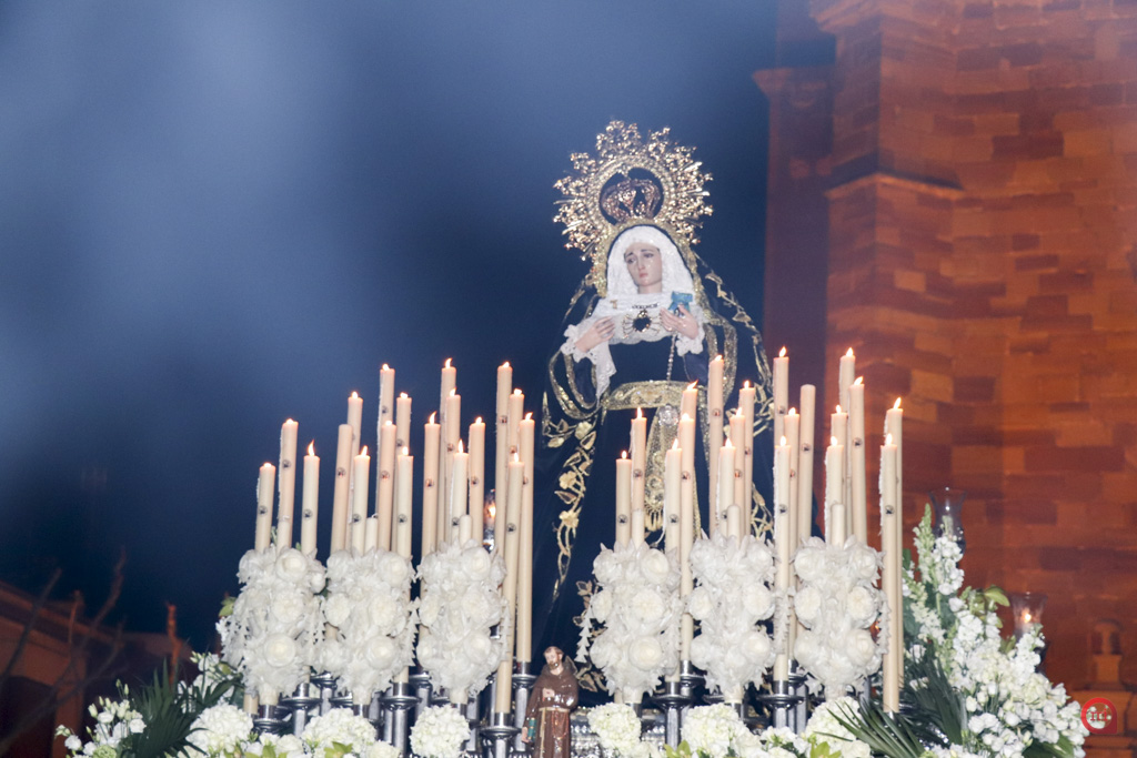 La Cofradía de Jesús Caído, la Verónica y la Dolorosa es la encargada de realizar este desfile con una de sus titulares. La procesión ha comenzado a las 10 de la noche con la salida por el pórtico de San Francisco de la Imagen portada por la cuadrilla de costaleros. La puerta de la Iglesia de San Francisco y el Altozano de la Inmaculada estaban muy concurridos para ver de nuevo a La Dolorosa, coincidiendo este retorno a la calle con la primera salida de la imagen después del proceso de restauración llevado a cabo por el Imaginero Francisco Javier Muñoz Boluda durante este tiempo en el que no se ha podido celebrar la Semana Santa como se ha conocido tradicionalmente.