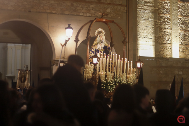 Fiel a su cita, tras dos años de espera, la imagen de Nuestra Señora de los Dolores aparecía a las 10 de la noche por el atrio de la Iglesia de la Asunción de Nuestra Señora ante la expectación de miles de criptanenses que no quisieron perderse la salida de la primera procesión de Semana Santa en Campo de Criptana, declarada de Interés Turístico Regional.