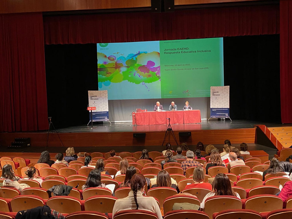 Docentes de toda Castilla-La Mancha se han reunido en el Teatro Emilio Gavira de Alcázar de San Juan para celebrar las ‘Jornadas Regionales de Formación de Equipos de Aula Hospitalaria y Atención Domiciliaria: Respuesta Educativa Inclusiva’, una iniciativa organizada por el Centro Regional de Formación del Profesorado de la Junta que ha sido inaugurada por el concejal de Educación, Mariano Cuartero, y el director del Centro regional, José Antonio Bravo.