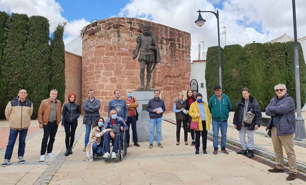 El inicio de la ruta ha sido la escultura “Alonso con su gato” del escultor valdepeñero Antonio Lillo Galiani, situada en la Av. de Herencia frente a Aguas de Alcázar y punto de encuentro habitual de la ruta guiada.