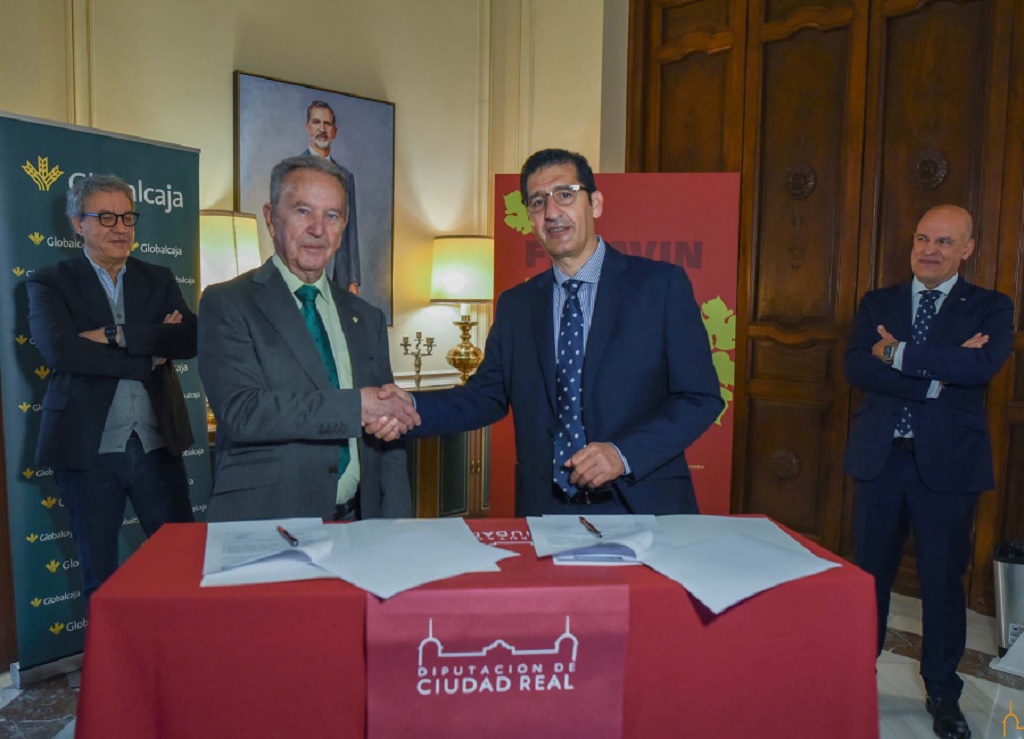 Como es tradicional desde que se celebra la Feria Nacional del Vino, la Diputación de Ciudad Real y Globalcaja han firmado un convenio por el que se establece cómo colabora la entidad financiera en el desarrollo de este importante evento comercial y negocial. El presidente de la institución provincial, José Manuel Caballero, y el presidente de Globalcaja, Carlos de la Sierra Torrijos, han procedido a la firma del documento en el Palacio Provincial, en el transcurso de un acto al que han asistido el director del evento, Manuel Juliá, y el director territorial de Globalcaja, Miguel Ángel León.