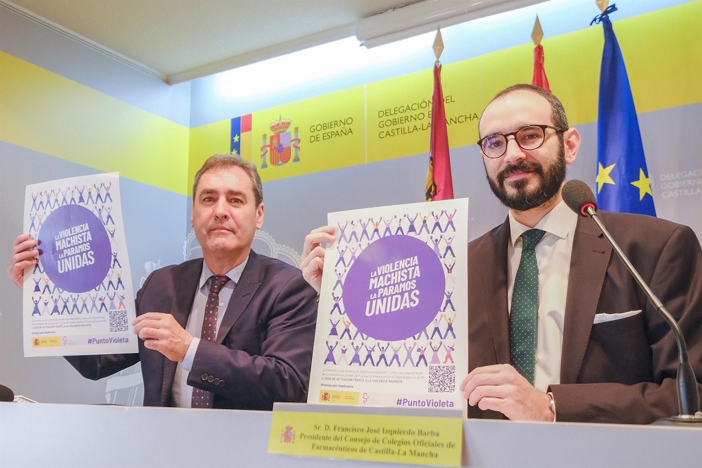 La Delegación del Gobierno en Castilla-La Mancha y el Consejo de Colegios de Farmacéuticos de la región han firmado este martes un acuerdo para que las casi 1.300 farmacias castellanomanchegas se conviertan en Puntos Violeta que sirvan como «refugio» a las mujeres víctimas de violencia de género, facilitando información sobre actuación y recursos en estos casos y haciendo también una labor de «acompañamiento» a las mujeres que lo necesiten.