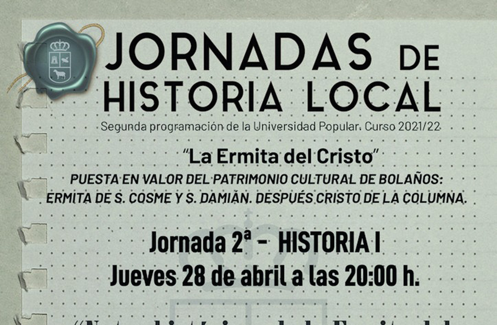 Las Jornadas de Historia local sobre “La Ermita del Cristo” desarrolladas por el Ayuntamiento de Bolaños, a través de la Universidad Popular, para poner en valor la historia, cultura y patrimonio de la localidad continúan su ciclo de ponencias, que se repite cada jueves en el templo, a las 20:00 horas.