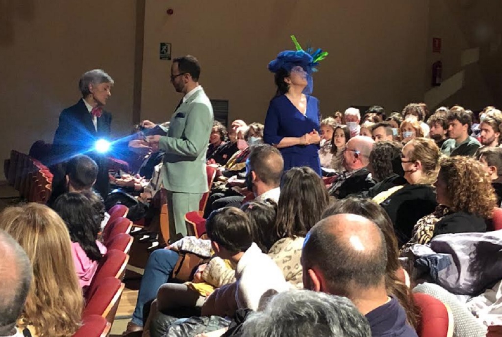 La obra pudo ser representada con todo su esplendor, gracias al levantamiento de la prohibición de la mascarilla, ya que el patio de butacas sirve también de escenario, es lo que su directora llama metateatro, teatro dentro del teatro porque el público asistente participa. La cuarta pared, afirma la directora, desaparece desde el primer momento de la obra, que comienza con los actores sentados entre el público.