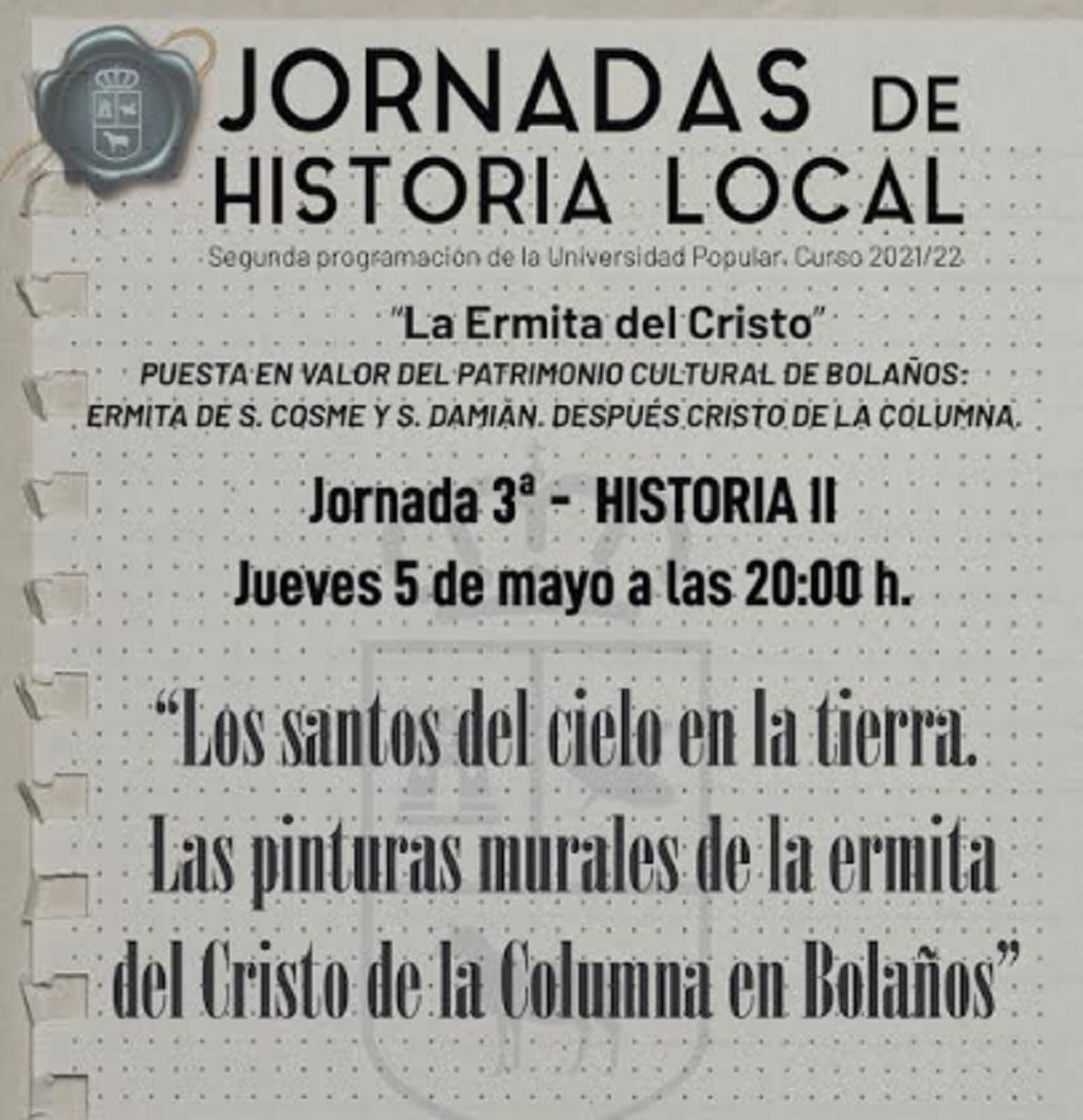 A las 20:00 horas dará comienzo la ponencia sobre ‘Los santos del cielo en la tierra. Las pinturas murales de la Ermita del Cristo de la Columna en Bolaños’, que se centrará en el tesoro de los murales que albergan en su interior las paredes del citado lugar.