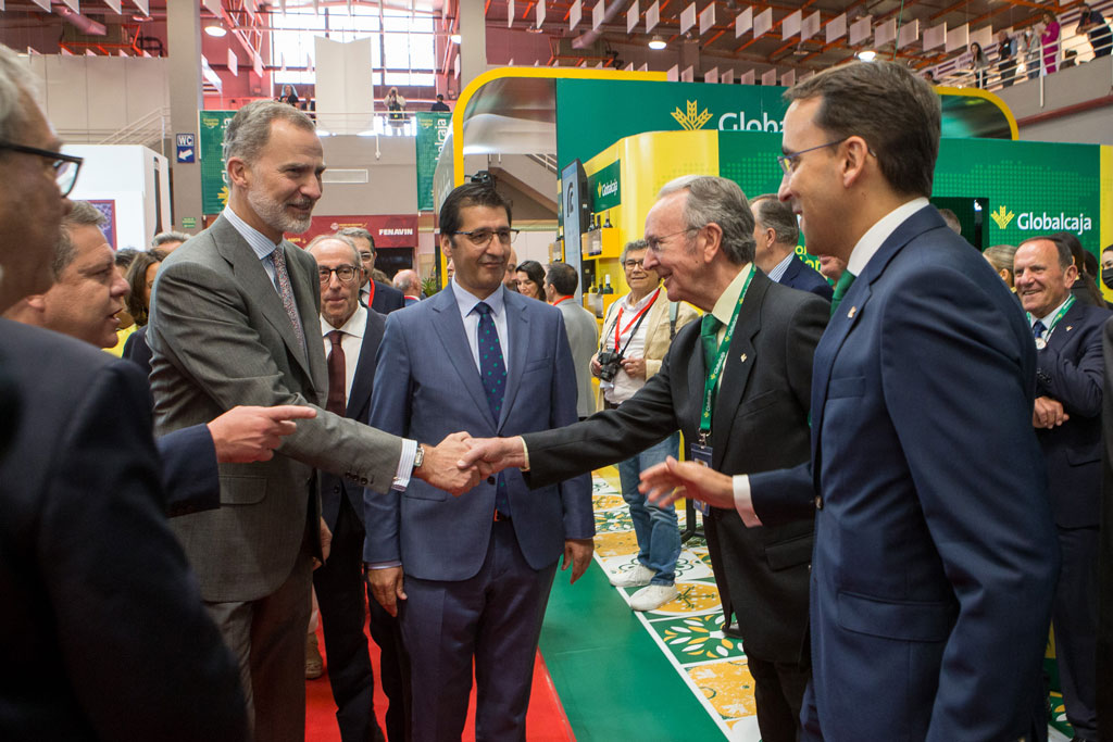 Globalcaja vuelve a dar muestra de su liderazgo y compromiso con el sector agroalimentario de Castilla-La Mancha en FENAVIN. El presidente y el director general de la entidad, Carlos de la Sierra y Pedro Palacios, respectivamente, han recibido al Rey Felipe VI en el stand de la Caja y han inaugurado, junto a autoridades nacionales, regionales, provinciales y locales, la Galería del Vino Globalcaja. Un espacio patrocinado por la cooperativa de crédito que se alza como una de las herramientas de negocio más importantes de la feria.