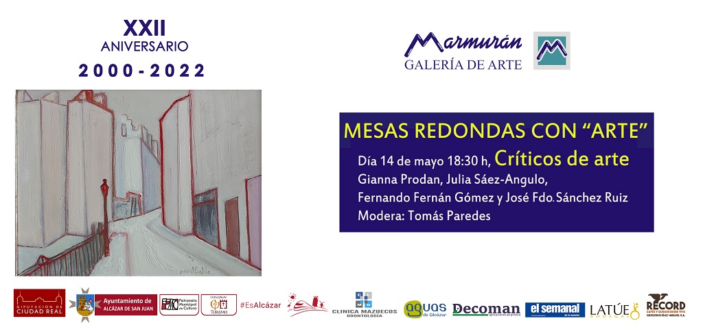 El próximo 14 de mayo proseguirá en Alcázar de San Juan el ciclo “Mesas redondas con arte” de la Galería Marmurán, con una cita de críticos de arte.