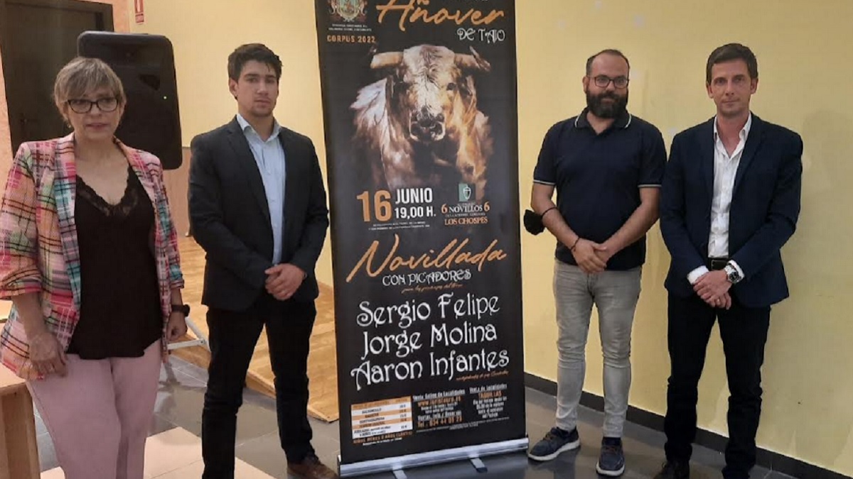 En el día de ayer fue presentado en Añover de Tajo el cartel de la novillada con picadores que tendrá lugar en la localidad con motivo de la festividad del Corpus Christi, el próximo 16 de junio a las 19:00 horas. El cartel, que había levantado una notable expectación, estará compuesto por el albaceteño Sergio Felipe, el toledano Jorge Molina y el novillero oriundo de Alcázar de San Juan Aaron Infantes. Será lidiado un encierro de “Los Chospes”.