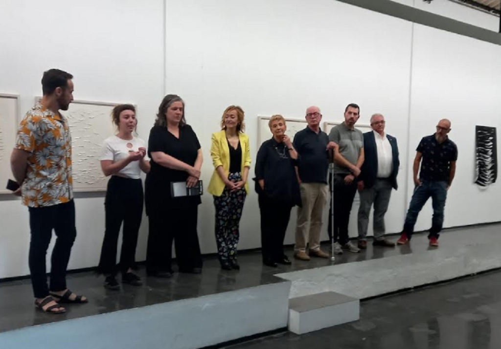 A continuación tomaba la palabra, la artista Victoria Santesmases que explicaba cómo se ha enfrentado a este gran espacio que supone la Sala de El Dorado con su grandes tinajas, un elemento muy característico del lugar que se convertían en un espacio potente para albergar su obra donde predomina el blanco y la luz que permite distinguir las luces y las sombras.