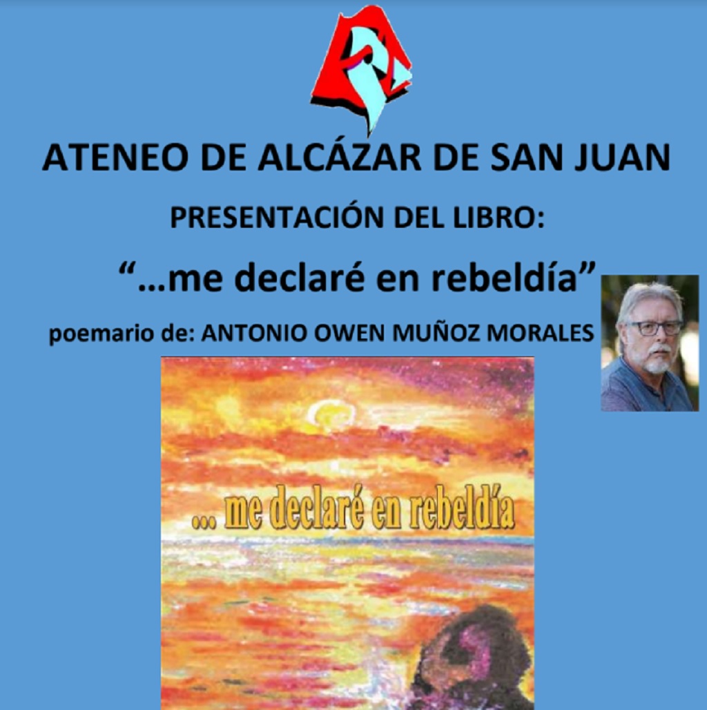 Antonio Owen Muñoz, miembro del Ateneo de Alcázar, presentará su poemario «Me declaré en rebeldía» este viernes a las 20 horas de la tarde.
